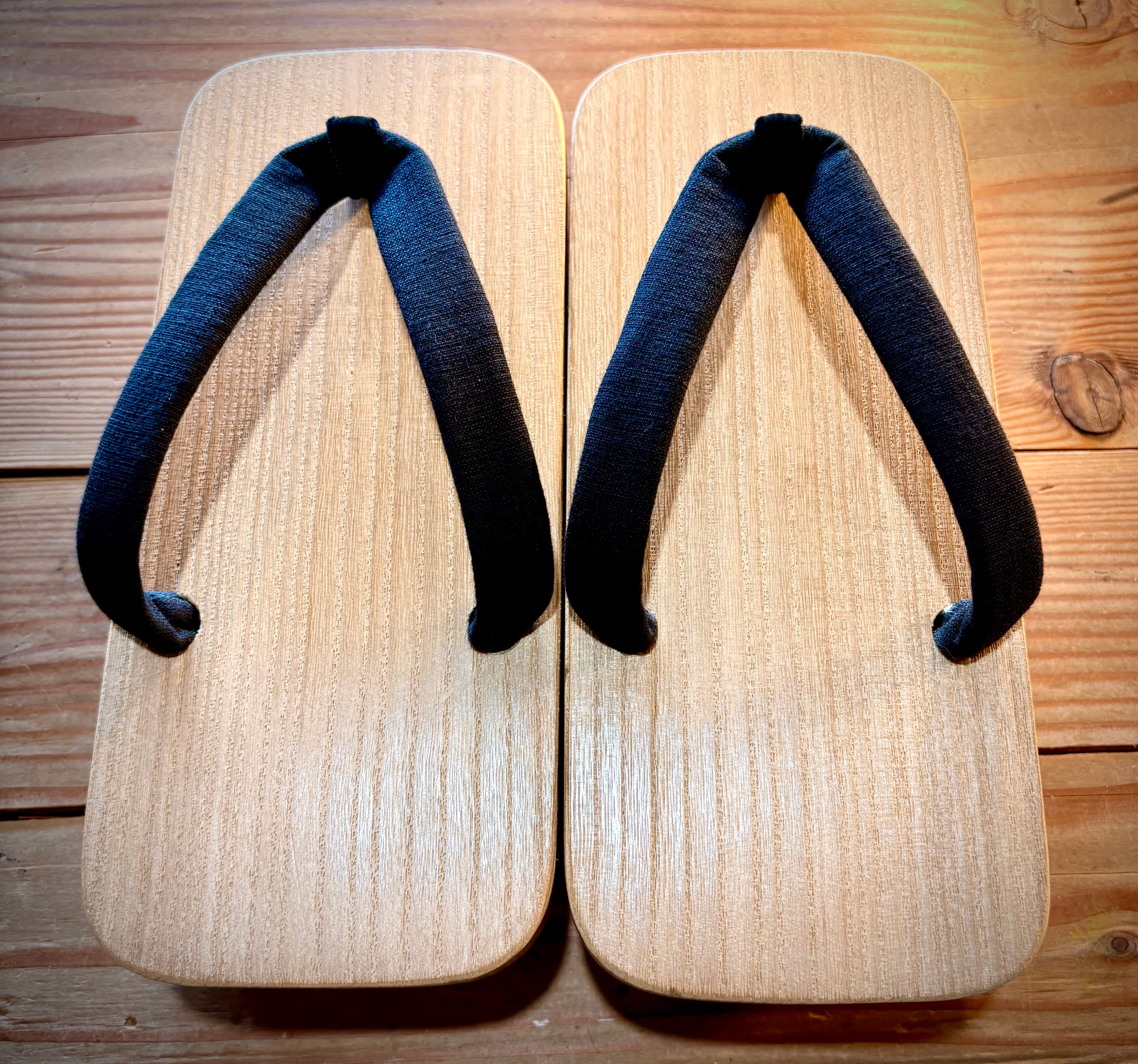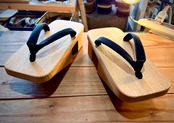 新潟は片貝の紺二で織染めされた半纏生地で作った鼻緒を挿げました。